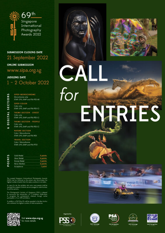 The Photographic Society of Singapore (PSS) is pleased to announce the Introduction of 5 Exhibition Distinctions to recognise the achievements attained through active participation of our SIPA exhibitions.
