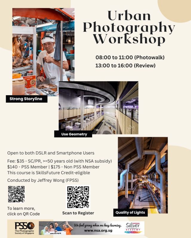 This course teaches participants the practical tips on how to use your smartphone or digital camera to take better urban photos. Photos will be reviewed on site to help participants to understand the concept and execution.